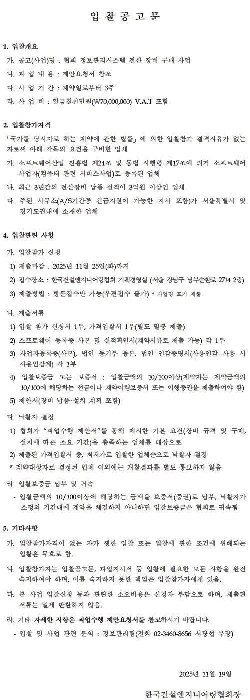 우리프리미엄 토토의 입찰 공고 소식을 알려 드립니다.| 프리미엄 토토 「정보관리시스템 전산 장비 구매」 입찰공고 |